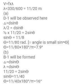 Two speakers $S_{1}$ and $S_{2}$, driven by the same amplifier, are placed at $y=1.0 \mathrm{~m}$ and $y=-1.0 \mathrm{~m}$. The speakers vibrate in phase at $600 \mathrm{~Hz}$. A man stands at a point on the $X$-axis at a very large distance from the origin and starts moving parallel to the $Y$ axis. The speed of sound in air is $330 \mathrm{~m} \mathrm{~s}^{-1}$. (a) At what angle $\theta$ will the intensity of sound drop to a minimum for the first time? (b) At what angle will he hear a maximum of sound intensity for the first time? (c) If he continues to walk along the line, how many more can he hear?