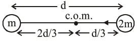 $\mathrm{F}=\frac{\mathrm{G}(2 \mathrm{~m}) \mathrm{m}}{\mathrm{d}^{2}}=(2 \mathrm{~m}) \omega^{2}(\mathrm{~d} / 3)$