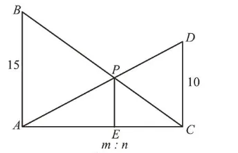 $\because \Delta C E P \sim \Delta C A B, \frac{n}{P E}=\frac{m+n}{15}$