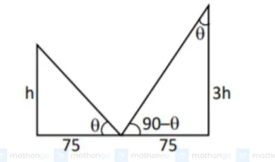 $\tan \theta=\frac{\mathrm{h}}{75}=\frac{75}{3 \mathrm{~h}}$