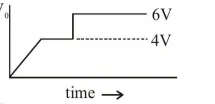 Till input voltage Reaches $4 \mathrm{~V}$ No zener is in Breakdown Region So $\mathrm{V}_{0}=\mathrm{V}_{\mathrm{i}}$ Then Now when $\mathrm{V}_{\mathrm{i}}$ changes between $4 \mathrm{~V}$ to $6 \mathrm{~V}$ One Zener with 4V will Breakdown are P.D. across This zener will become constant and Remaining Potential will drop. acro