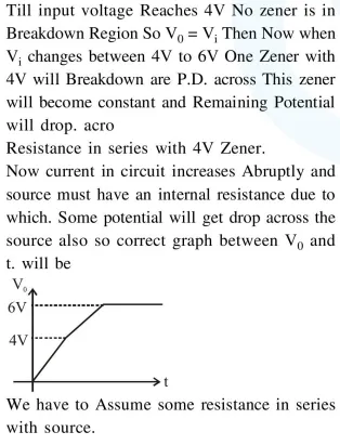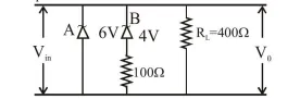 Two Zener diodes (A and B) having breakdown voltages of $6 \mathrm{~V}$ and $4 \mathrm{~V}$ respectively, are connected as shown in athe circuit below. The output voltage $V_{0}$ variation with input voltage linearly increasing with time, is given by :