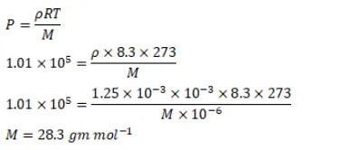 The density of an ideal gas is $1.25 \times 10^{-3} \mathrm{~g} / \mathrm{cm}^{3}$ at STP. Calculate the molecular weight of the gas.