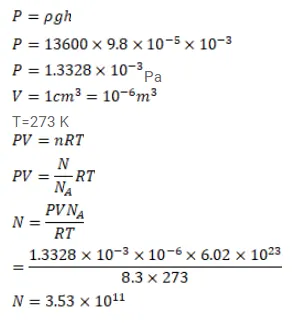 Find the number of molecules in $1 \mathrm{~cm}^{3}$ of an ideal gas at $0^{\circ} \mathrm{C}$ and at a pressure of $10^{-5} \mathrm{~mm}$ of mercury.