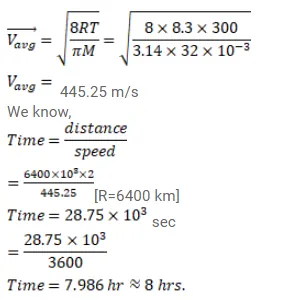 Consider a sample of oxygen at $300 \mathrm{~K}$. Find the average time taken by a molecule to travel a distance equal to the diameter of the earth.