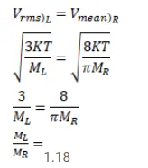 Figure shows a vessel partitioned by a fixed diathermic separator. Different ideal gases are filled in the two parts. The rms speed of the molecules in the left part equals the mean speed of the molecules in the right. Calculate the ratio of the mass of a molecule molecule in the left part of the mass of a molecule in the right part.