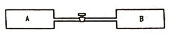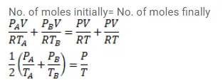 Figure shows two vessels $\mathrm{A}$ and $\mathrm{B}$ with rigid walls containing ideal gases. The pressure, temperature and the volume are $\rho_{A}, T_{A}, V$ in the vessel $\mathrm{A}$ and $\rho_{B}, T_{B}, V$ in the vessel B. The vessels are now connected through a small tube. Show that the pressure $p$ and the temperature $T$ satisfy