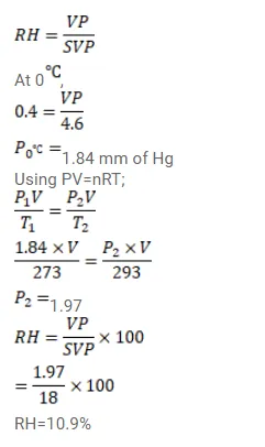 On a winter day, the outside temperature is $0^{\circ} \mathrm{C}$ and relative humidity $40 \%$. The air from outside comes into a room and is heated to $20^{\circ} \mathrm{C}$. What is the relative humidity in the room? The saturation vapour pressure at $0^{\circ} \mathrm{C}$ is $4.6 \mathrm{~mm}$ of mercury and at $20^{\circ} \mathrm{C}$ it is $18 \mathrm{~mm}$ of mercury.