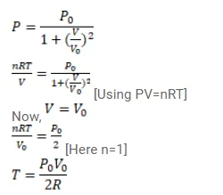 Where ${ }^{p_{0}}$ and $V_{0}$ are constants. Find the temperature of gas when $V=V_{0}$.