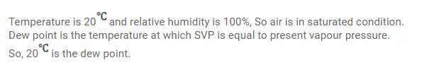 The weather report reads, "Temperature $20{ }^{\circ} \mathrm{C}$ : Relative humidity $100 \% "$. What is the dew point?