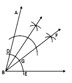 2. Keeping B as center and any radius draw an arc which intersects AB at D and BC at E.