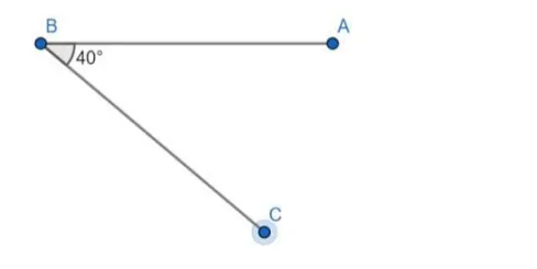 - Join the vertex $B$ to the small dot with a ruler to form the second arm, $B C$, of the angle.