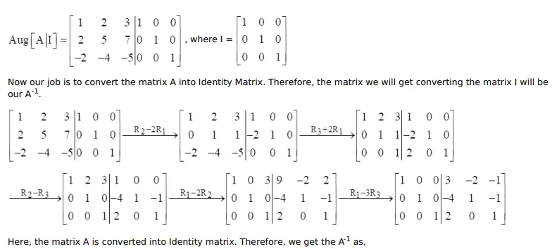 Using elementary row transformations, find the inverse of each of the following matrices: