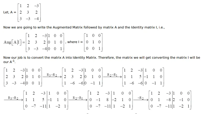 Using elementary row transformations, find the inverse of each of the following matrices: