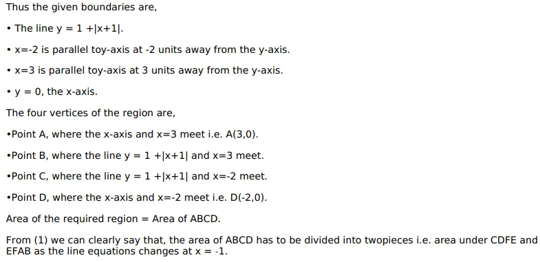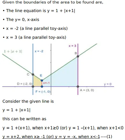 Using integration, find the area of the region bounded by the lines $y=1|x+1|, x=-2, x=3$ and $y=0$.