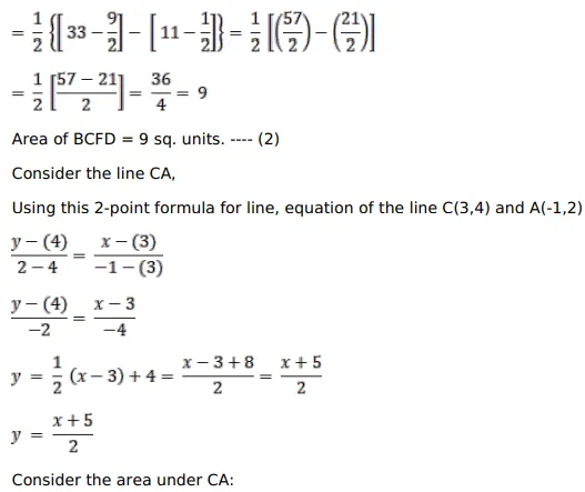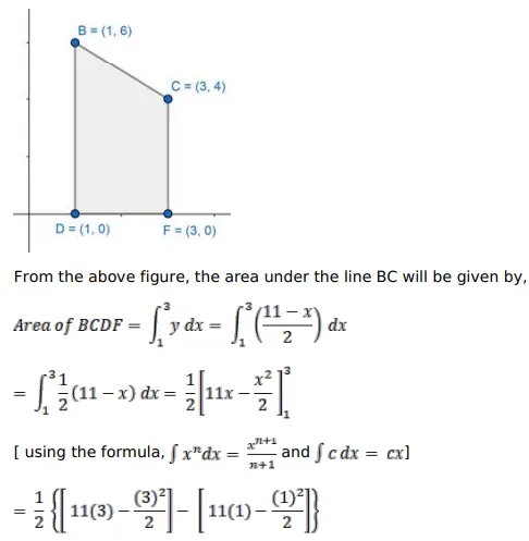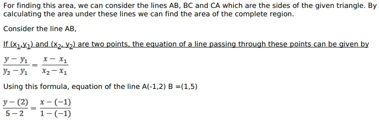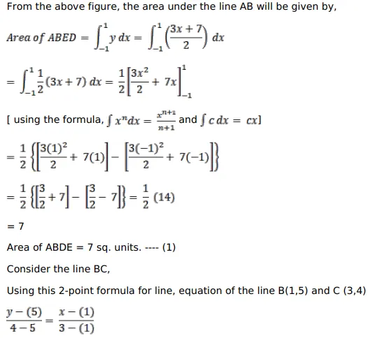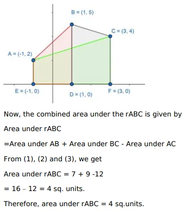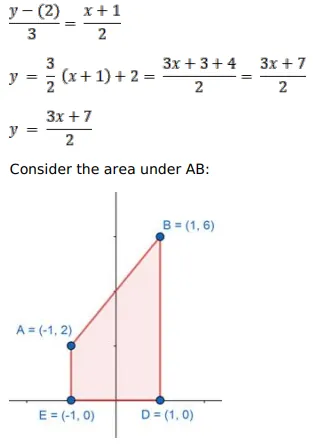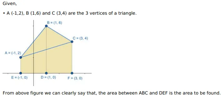 Using integration, find the area of the region bounded by the triangle whose vertices are $A(-1,2), B(1,6)$ and C $(3,4)$