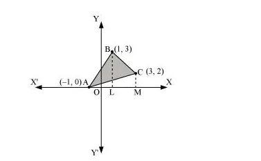Using integration finds the area of the region bounded by the triangle whose vertices are $(-1,0),(1,3)$ and $(3,2)$.