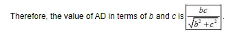 $A D=\frac{b c}{\sqrt{b^{2}+c^{2}}}$