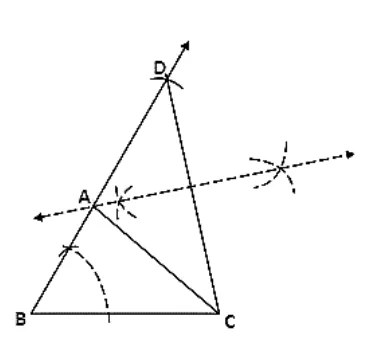 3. Keeping B as center and radius 12 cm draw an arc which intersects XB at D
