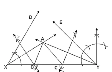 4. Draw the perpendicular bisector of AX and AY which intersect XY at B and C respectively.
