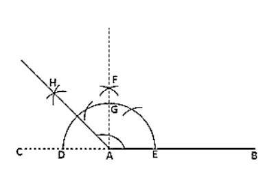 2. Keeping A as the center and any radius draw an arc which intersects AC at D and AB at E.