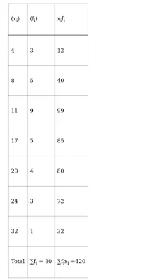 $\operatorname{Mean}(\overline{\mathrm{x}})=\frac{\sum \mathrm{f}_{\mathrm{i}} \mathrm{x}_{\mathrm{i}}}{\sum \mathrm{f}_{\mathrm{i}}}$