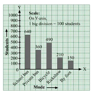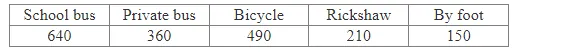 Various modes of transport used by 1850 students of a school are given below.