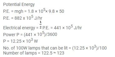 Water falling from a $50 \mathrm{~m}$ high fall is to be used for generating electric energy. If $1.8 \times 10^{5} \mathrm{~kg}$ of water falls per hour and half the gravitational potential energy can be converted into electric energy, how many $100 \mathrm{~W}$ lamps can be lit.