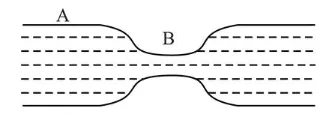 $P_{A}+\frac{1}{2} \rho V_{A}^{2}=P_{B}+\frac{1}{2} \rho V_{B}^{2} \Rightarrow P_{A}-P_{B}=\frac{1}{2} \rho\left(V_{B}^{2}-V_{A}^{2}\right)$