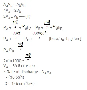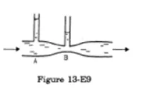 Water flows through a horizontal tube as shown in figure (13-E9). If the difference of heights of water column in the vertical tubes is $2 \mathrm{~cm}$, and the areas of cross-section at $A$ and $B$ are $4 \mathrm{~cm}^{2}$ and $2 \mathrm{~cm}^{2}$ respectively, find the rate of flow of water across any section.