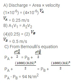 Water flows through a horizontal tube of variable cross-section (figure 13-E7). The area of cross-section at A and B are 4 $\mathrm{mm}^{2}$ and $2 \mathrm{~mm}^{2}$ respectively. If $1 \mathrm{cc}$ of water enters per second through $\mathrm{A}$, find