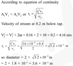 Water is flowing continuously from a tap having an internal diameter $8 \times 10^{-3} \mathrm{~m}$. The water velocity as it leaves the tap is $0.4 \mathrm{~ms}^{-1}$. The diameter of the water stream at a distance $2 \times 10^{-1} \mathrm{~m}$ below the tap is close to :-