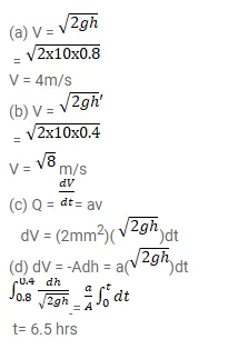 (c) Find the volume of water leaked out during a time internal dt after the height remained is $h$. Thus find the decrease in height dh in terms of $h$ and dt.