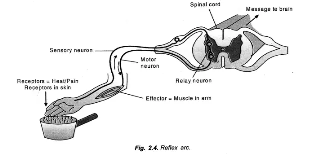- On being pricked or coming in contact with hot surface, hand is withdrawn even before pain is perceived (by brain),