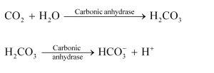 About 70% of carbon dioxide is transported as sodium bicarbonate. As CO2 diffuses into the blood plasma, a large part of it combines with water to form carbonic acid in the presence of the enzyme carbonic anhydrase. Carbonic anhydrase is a zinc enzyme that speeds up the formation of carbonic acid. This carbonic acid dissociates into bicarbonate (HCO3–) and hydrogen ions (H+).