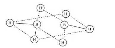 These hydrides cannot be represented by conventional Lewis structures. $\mathrm{B}_{2} \mathrm{H}_{6}$, for example, contains four regular bonds and two three centered-two electron bond. Its structure can be represented as:
