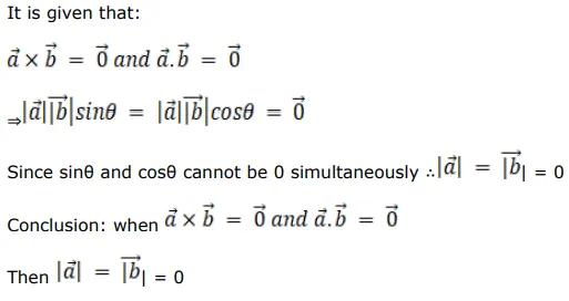 What conclusion can you draw about vectors $\vec{a}$ and $\vec{b}$ when $\vec{a} \times \vec{b}=\overrightarrow{0}$ and $\vec{a} \cdot \vec{b}=0$ ?