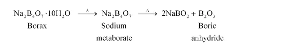 (a) When heated, borax undergoes various transitions. It first loses water molecules and swells. Then, it turns into a transparent liquid, solidifying to form a glass-like material called borax bead.