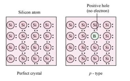 p-type semiconductor: The semiconductor whose increased in conductivity is a result of electron hole is called a p-type semiconductor. When a crystal of group 14 elements such as Si or Ge is doped with a group 13 element such as B, Al, or Ga (which contains only three valence electrons), a p-type of semiconductor is generated.