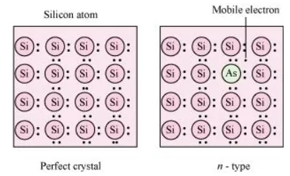 Si and Ge have four valence electrons each. In their crystals, each atom forms four covalent bonds. On the other hand, P and As contain five valence electrons each. When Si or Ge is doped with P or As, the latter occupies some of the lattice sites in the crystal. Four out of five electrons are used in the formation of four covalent bonds with four neighbouring Si or Ge atoms. The remaining fifth electron becomes delocalised and increases the conductivity of the doped Si or Ge.
