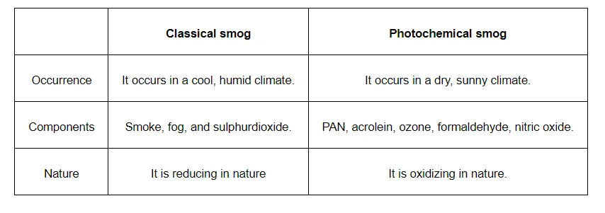 What is smog? How is classical smog different from photochemical smog?