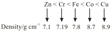 $\mathrm{Zn}<\mathrm{Cr}<\mathrm{Fe}<\mathrm{Co}<\mathrm{Cu}$
