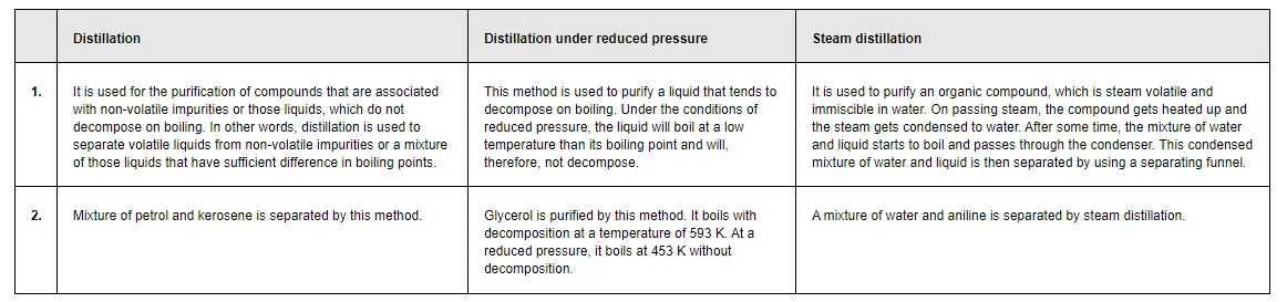 What is the difference between distillation, distillation under reduced pressure and steam distillation ?