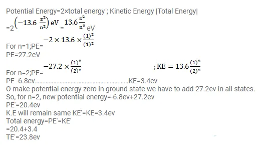 What is the energy of a hydrogen atom in the first excited state if the potential energy is taken to be zero in the ground state?
