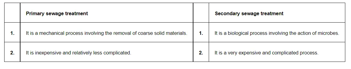 What is the key difference between primary and secondary sewage treatment?