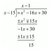 Now, we divide $f(x)=x^{2}-16 x+30$ by $(x-15)$ we get
