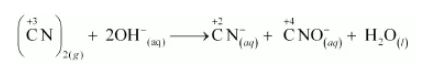 $(\mathrm{CN})_{2(g)}+2 \mathrm{OH}_{(2 q)}^{-} \longrightarrow \mathrm{CN}_{((q)}^{-}+\mathrm{CNO}_{(a q)}^{-}+\mathrm{H}_{2} \mathrm{O}_{(l)}$