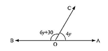 What value of y would make AOB a line in the below figure, If ∠AOB = 4y and ∠BOC = (6y + 30)?