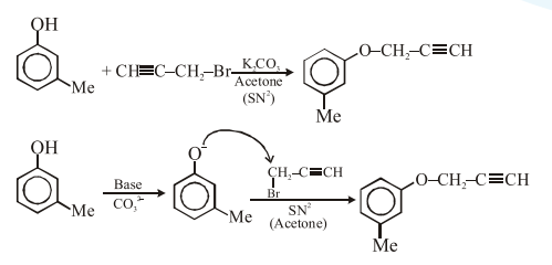 $\left(\mathrm{HC} \equiv \mathrm{C}-\mathrm{CH}_{2} \mathrm{Br}\right)$ in present of $\mathrm{K}_{2} \mathrm{CO}_{3}$ in acetone