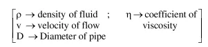 $\mathrm{R}_{\mathrm{e}}=\frac{\rho \mathrm{vD}}{\eta}$